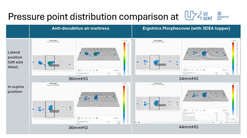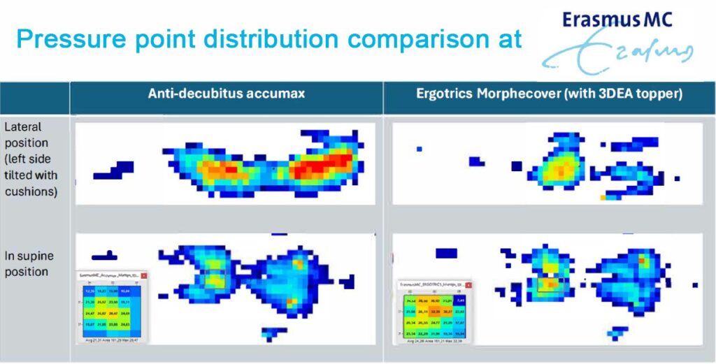 The conclusions of both studies indicated that the Ergotrics Morphecover has the same or better pressure distribution properties as the anti-decubitus mattress.