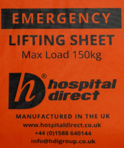 Our Emergency Lifting Sheet is suitable for patients weighing up to 150kg (23.6 stone). A minimum of four people can lift lighter patients. However the sheet has space for up to eight if your patient is towards the higher end of the safe working load.